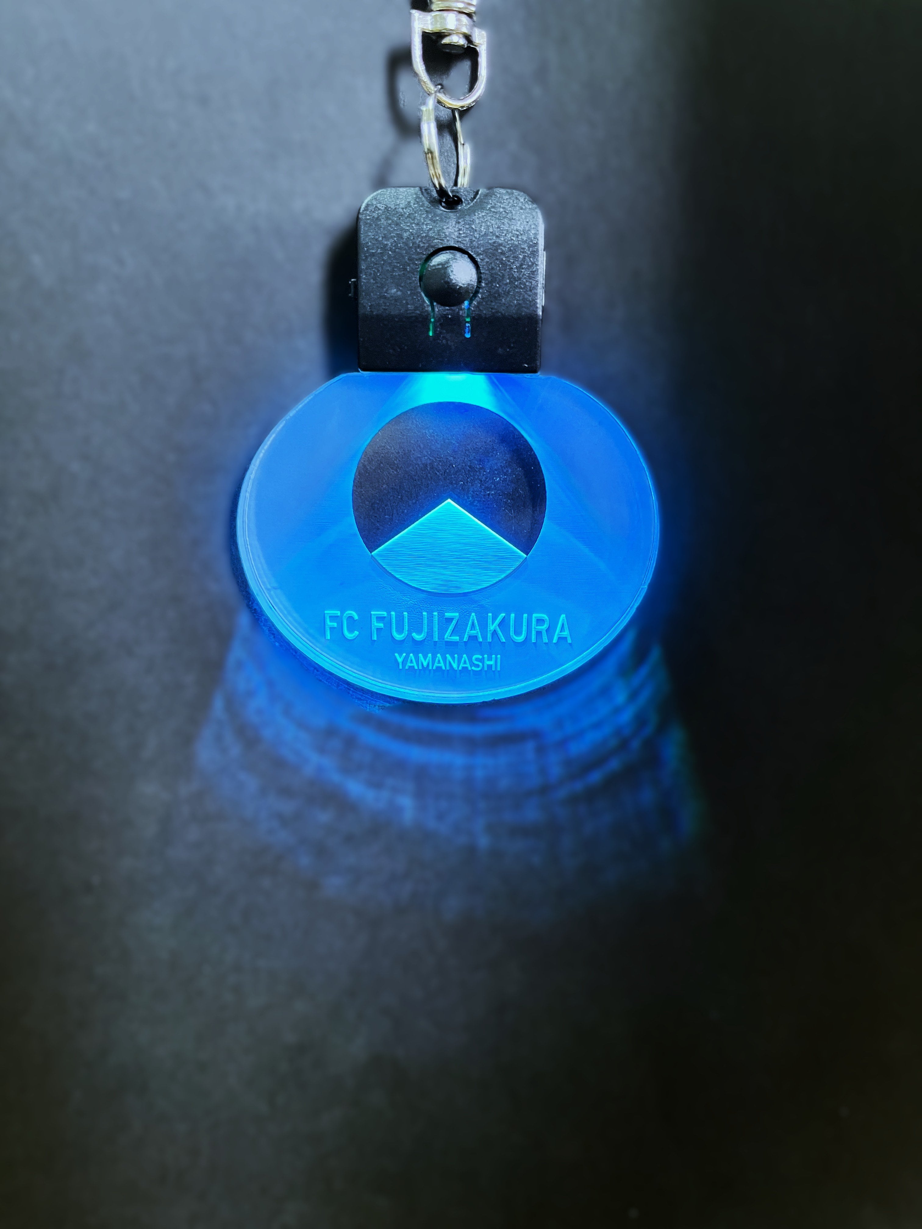 スイッチを押すとチームロゴが光る、特別仕様のライトキーホルダー。