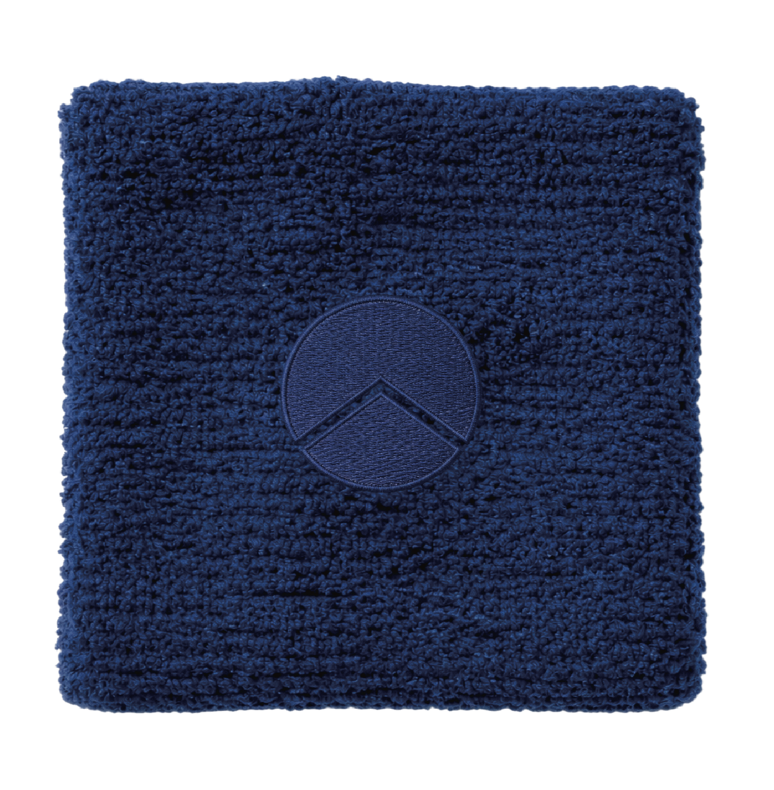 同色刺繍でロゴをさりげなくあしらったリストバンド。